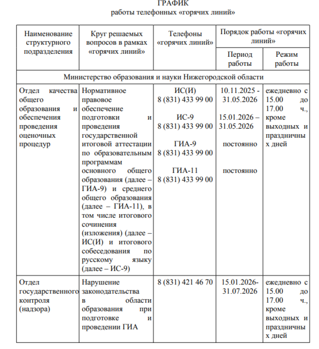 - Приказ министерства образования и науки Нижегородской области от 07.11.2023 № 316-01-63-2927/23 "Об определении мест регистрации и утверждении форм заявлений граждан на участие в написании итогового сочинения (изложения), прохождение государственной итоговой аттестации по образовательным программам среднего общего образования и сдачу единого государственного экзамена на территории Нижегородской области" ознакомиться